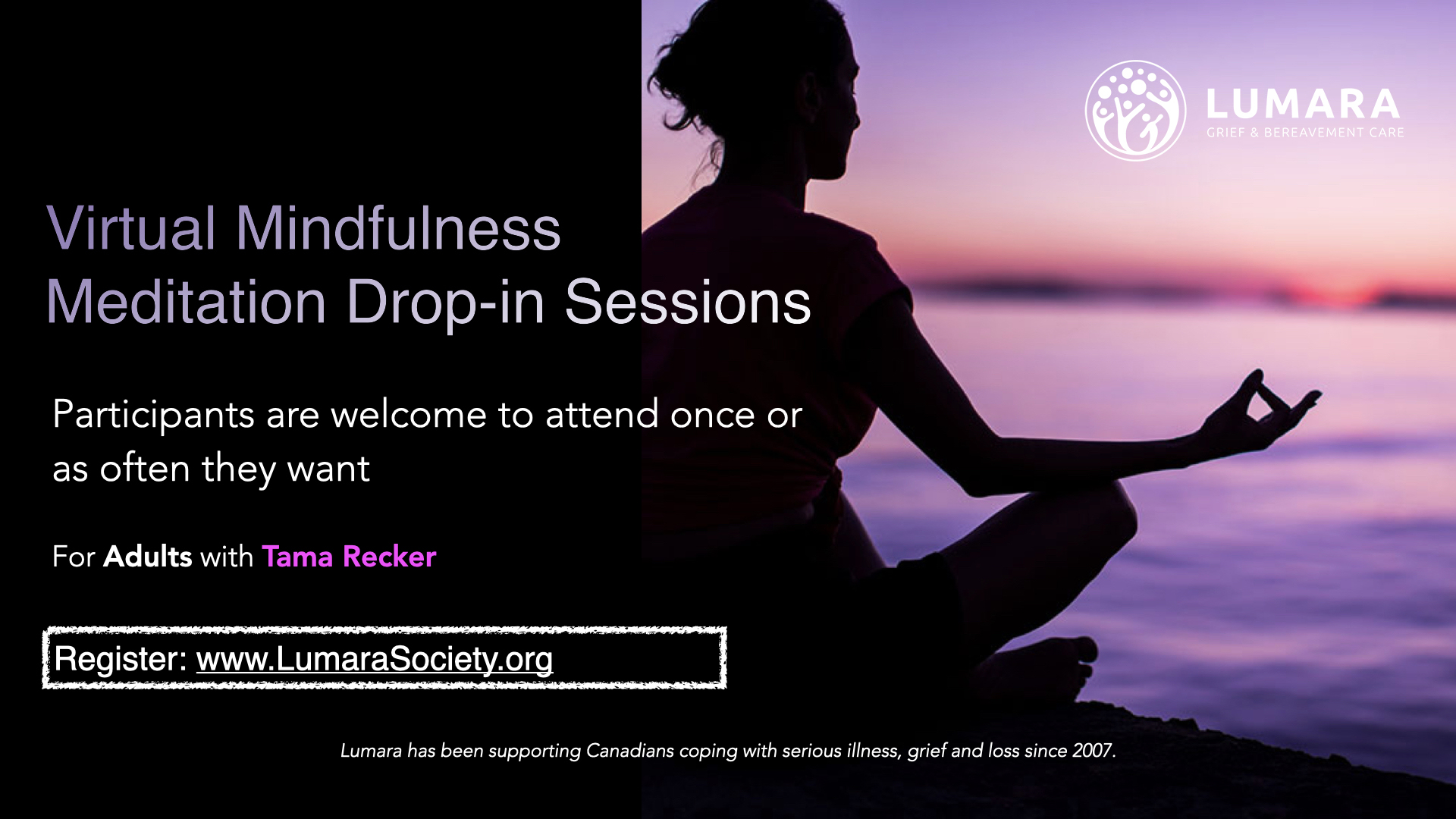 Join us to nurture self-care and help create more space around difficult thoughts and feelings. With practice, we can connect with more peace for our body, mind, and heart – even in the midst of pain. These weekly mindfulness sessions offer support to manage changing times. The format includes music and guided meditation. There is an optional time to chat at the end for those who are interested, or you can log off right after the meditation.